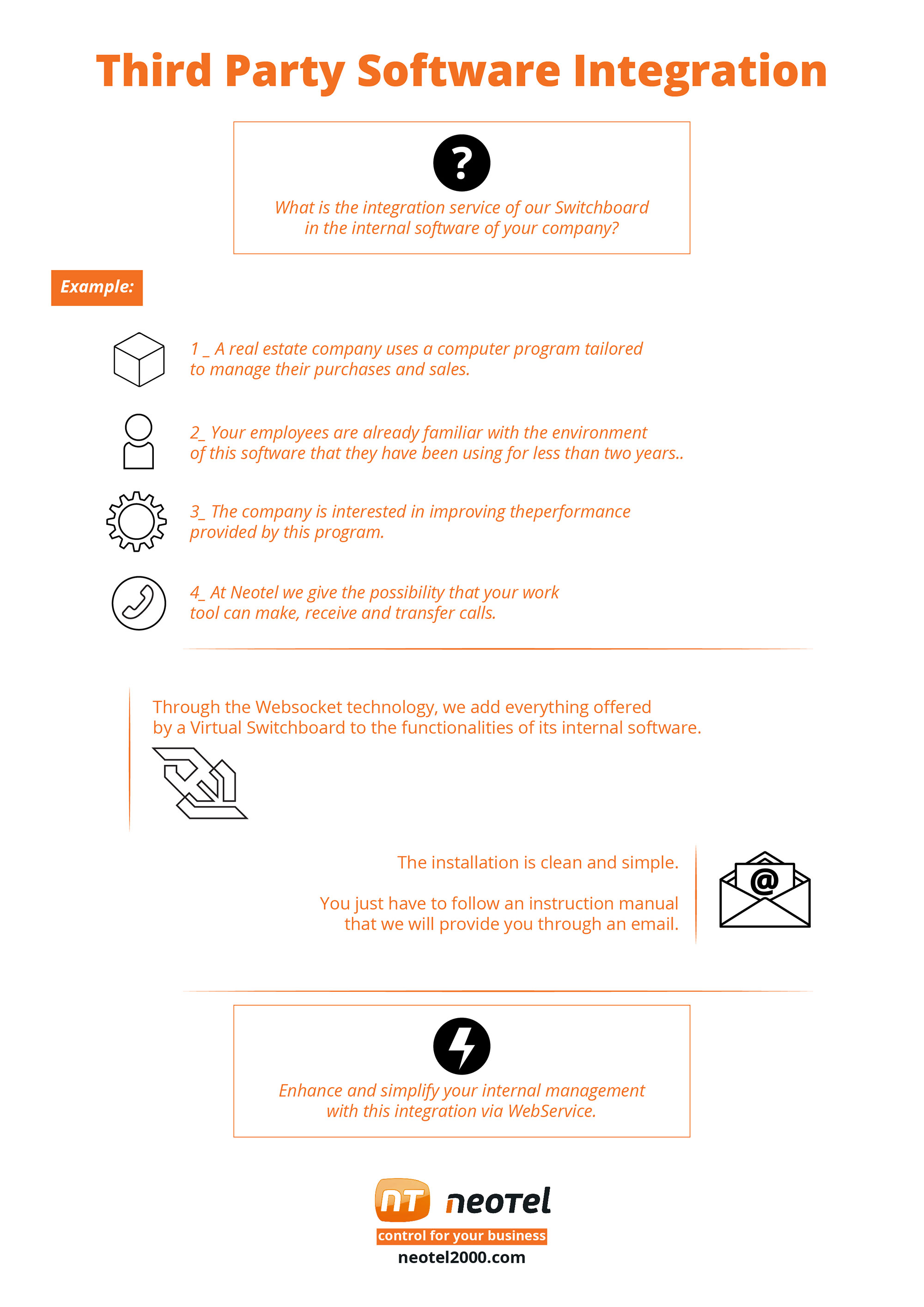 Neotel with the hiring of its virtual switchboard enables a Web Socket (Web Service) to greatly facilitate the interaction between applications developed by third parties and the customer’s switchboard.