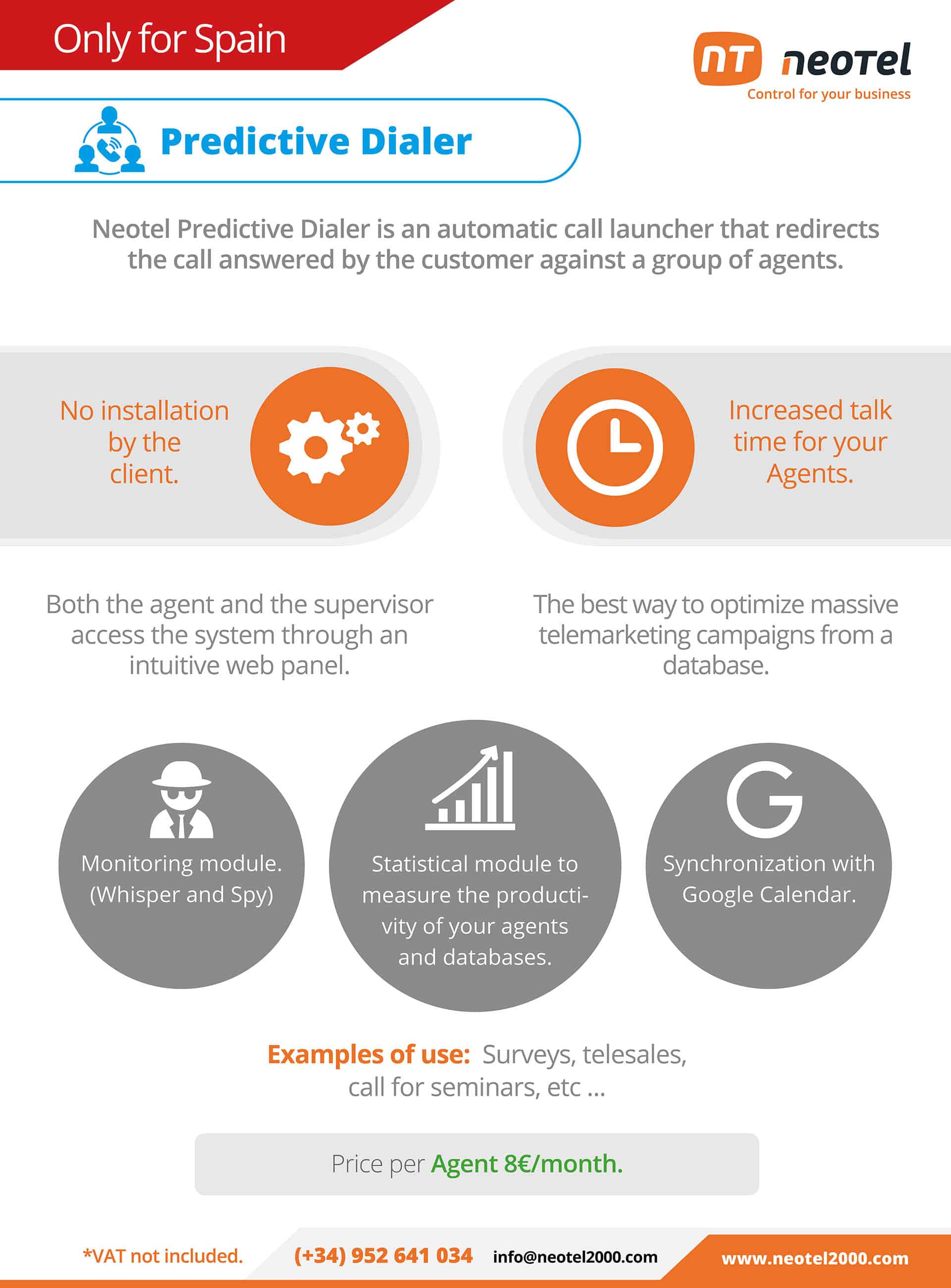 Tool designed to make calls automatically in a progressive and / or predictive way, which maximizes the cost through an increase in the efficiency of the agents’ time utilization.